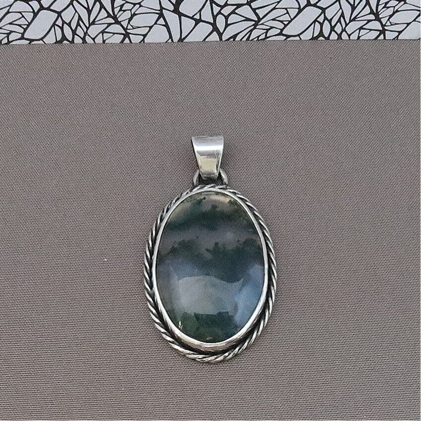 Deze handgemaakte hanger met mosagaat is verkocht.