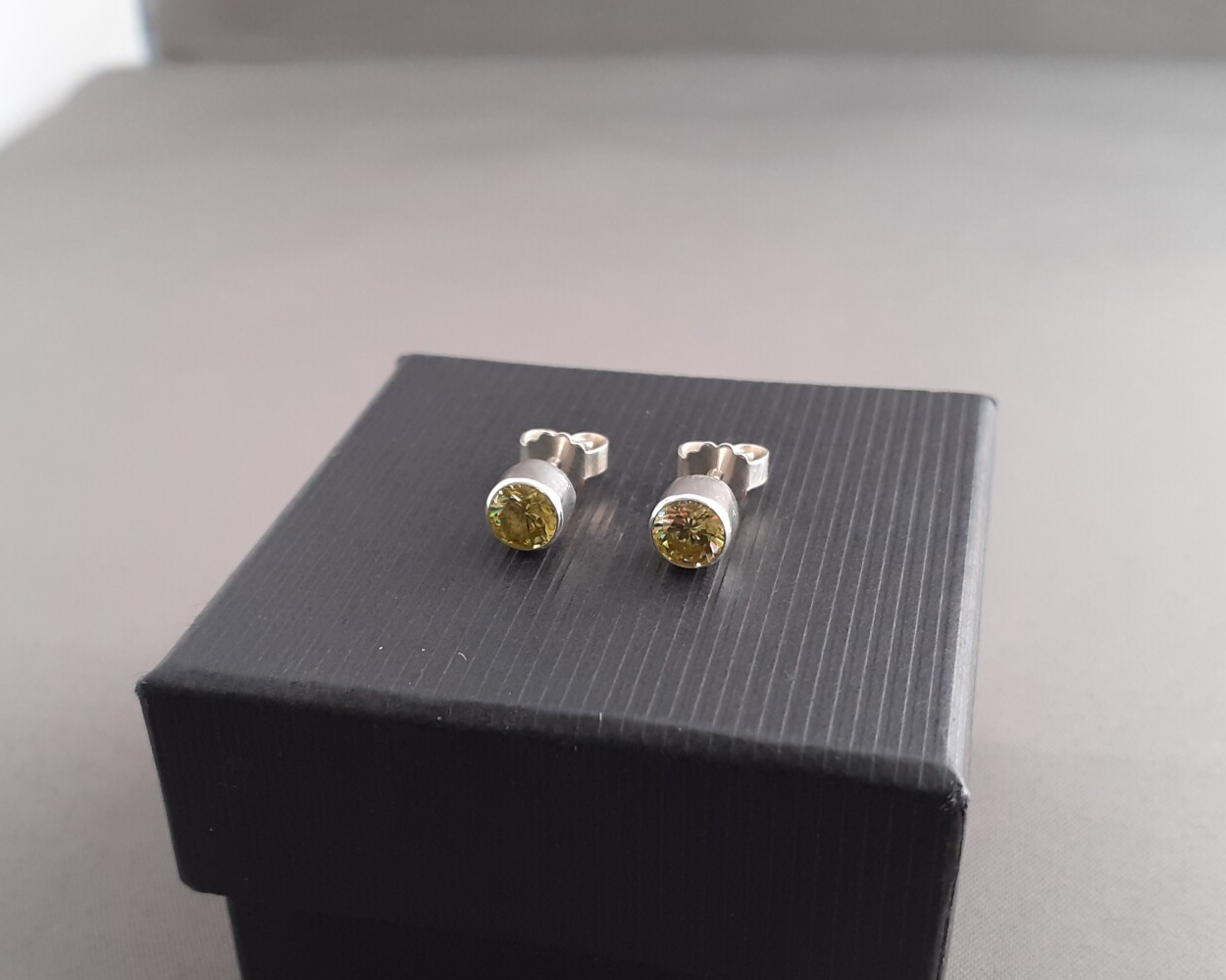 Dit zijn door mijzelf handgemaakte zilveren oorknopjes met Peridot.