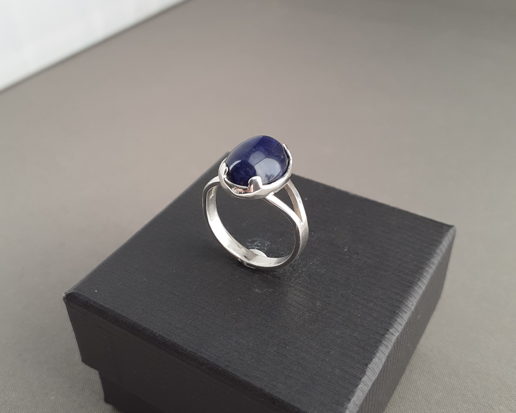 Dit is een handgemaakte zilveren ring met een ioliet.