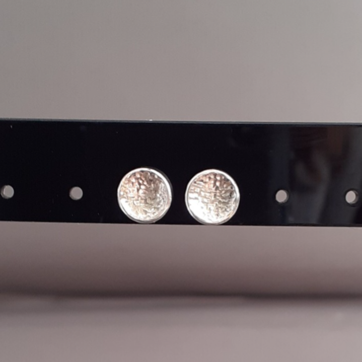 Dit zijn door mijzelf handgemaakte zilveren oorknopjes met een putjesstructuur.