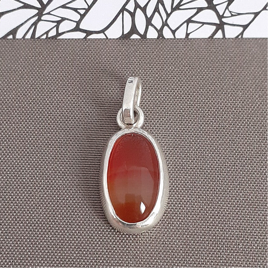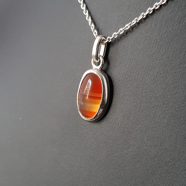 Aan de achterkant is de hanger open waardoor licht door de steen gaat en een mooi kleuren spel ontstaat van oranje en geel.