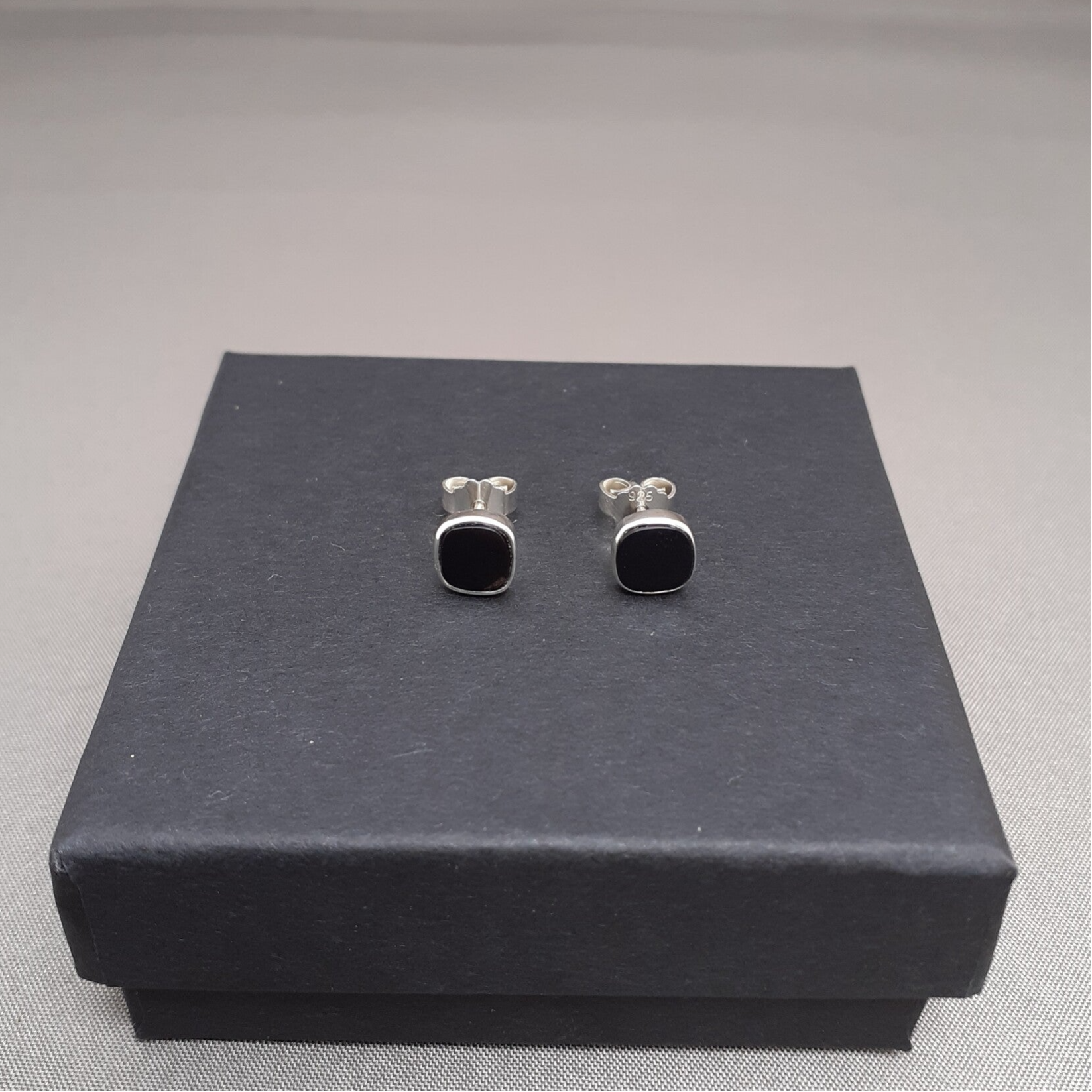 Vierkant collectie - Oorknop klein onyx - Zilver